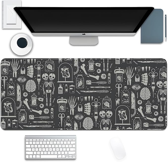 Human Skeleton Medical Mouse Pad,Large X Ray Mousepad Desk Pad with Stitched Edges,Non-Slip Waterproof Rubber Base Mouse Mat for Office Computer Keyboard Laptop Home(27.5x11.8 in)