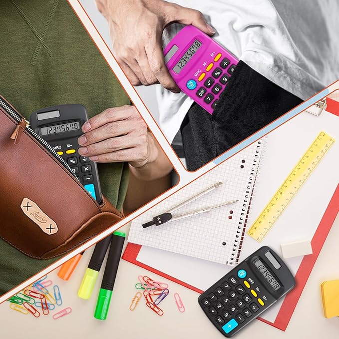 - Package Contains: You will receive 18 pocket calculators in 9 different colors (blue, pink, purple, white, cyan, yellow, black, red, green), rich colors to meet your needs