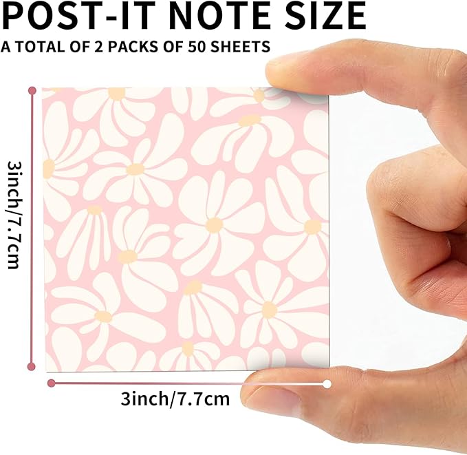 2 Pack Sticky Notes 3x3 Inches, Bright Cute Strong Sticking Power, Easy to Post for Home, Office, 80sheets/Pads, Pink Daisy