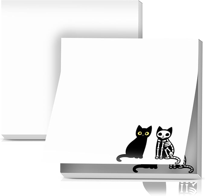 2 Pack Sticky Notes 3x3 Inches, Bright Cute Strong Sticking Power, Easy to Post for Home, Office, 80sheets/Pads, Black Skleton Cats