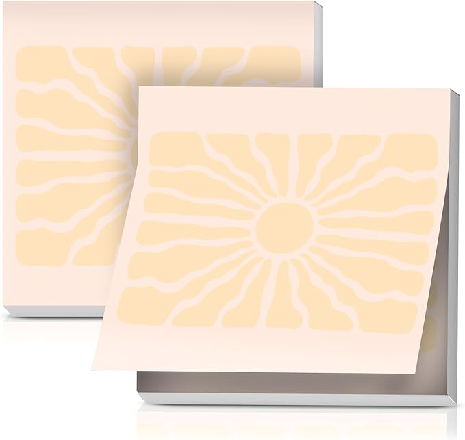 2 Pack Sticky Notes 3x3 Inches, Bright Cute Strong Sticking Power, Easy to Post for Home, Office, 80sheets/Pads, Abstract Sun
