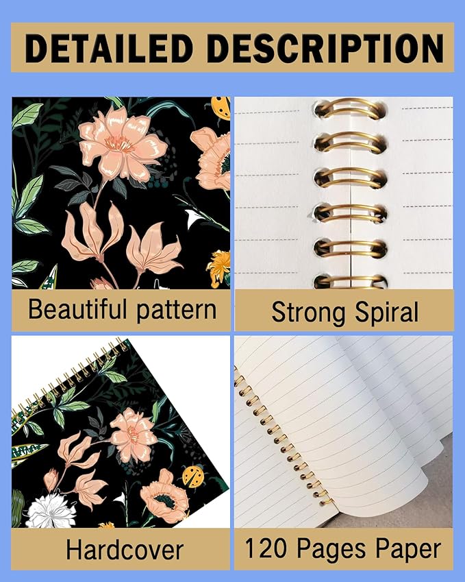 - Spiral Notebook:Equipped with a durable twin-wire binding, this spiral notebook opens fully flat at 360° to ensure easy page flipping and a comfortable writing surface, wherever you use it.