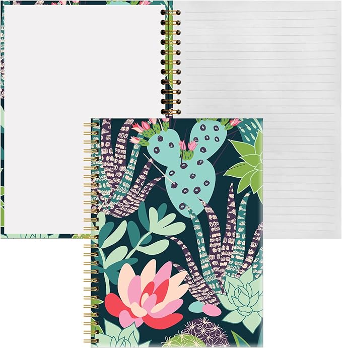 Spiral Notebook A5, Hardcover Journal for Women, 120 Pages Thick College Ruled Paper, Perfect for Office, School, or Home Use(Doodle Cactus)