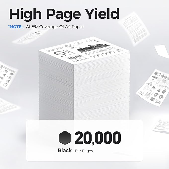 - High-Yield: up to 20,000 pages per B310/B315 Black (Total 40,000 pages, 5% coverage).