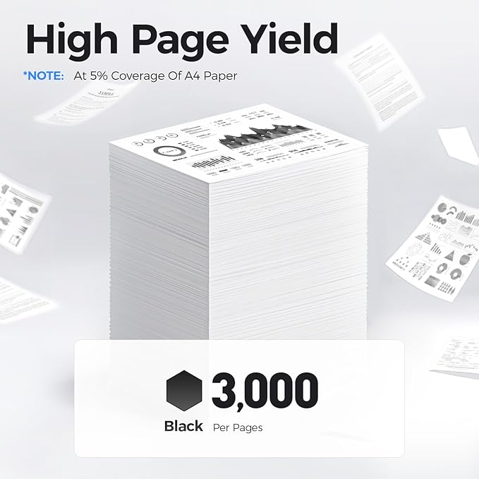- High-Yield: up to 3,000 pages per B205/B210/B215 Black (Total 6,000 pages, 5% coverage).