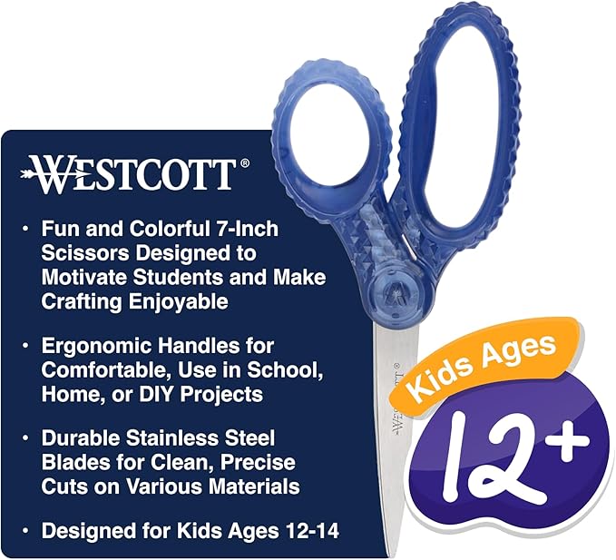 - Unleash Creativity with Westcott Gem Scissors, Ages 12+ - Designed for students, these colorful scissors are perfect for all your arts and crafts needs. The comfort-grip vibrant crystal-design handles make creative activities enjoyable for hours of use