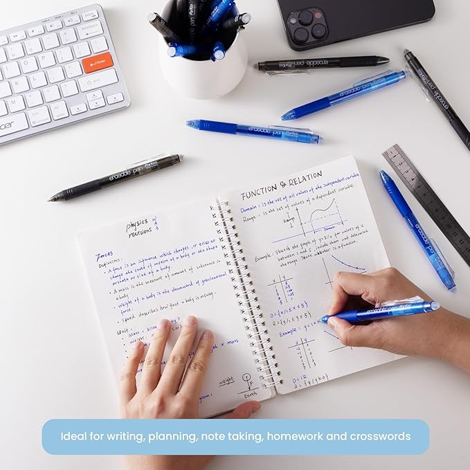 - Multiple use: Use these erasable pens black to complete Sudoku and crossword puzzles without a mistake or a hole in the paper; Keep your paper planners or books neat and clean; Can be used on smart notebook