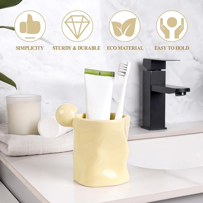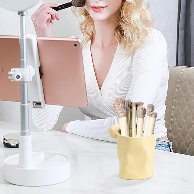 Ceramic Pen Holder for Desk, Pencil Holder Stand, Pencil Cup Pot, Irregular Shape Desktop Organizer for Office, Home, School - Yellow