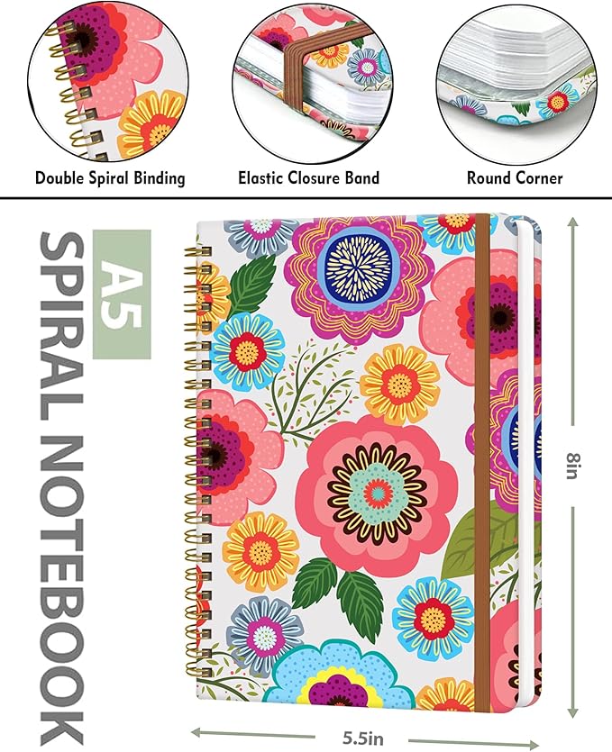 - PREMIUM A5 SPIRAL NOTEBOOK – This spiral-bound notebook includes 120 high-quality, college-ruled pages designed to prevent ink bleed-through, providing a smooth writing experience for all your note-taking and journaling needs.