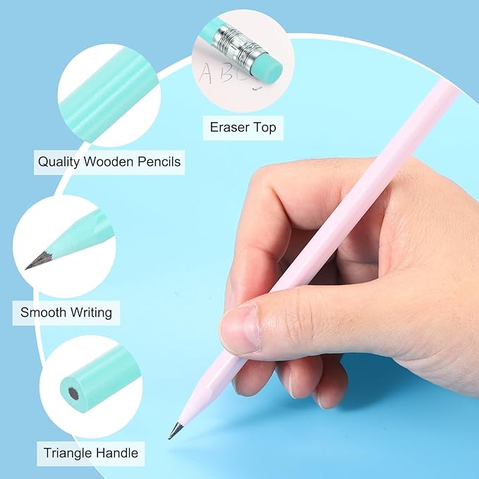 - Advantage: Smooth writing, providing a good writing experience, with good quality HB lead, perfect for sketching, exams, note-taking, and creative projects. The wooden pencils are lightweight for easy carry, not easy to break or distort, and durable for use. The triangle handle of the wooden pencil provides a comfortable grip and prevents it from falling off the table. The end of pencils has an eraser, helping you easily erase writing errors.