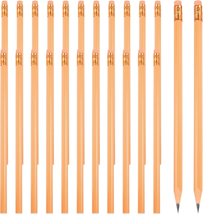 PATIKIL Round Pencils, 24 Pcs Triangle HB Graphite Pencil Wooden Pencils with Eraser for Classroom Office Writing Drawing Supplies, Orange