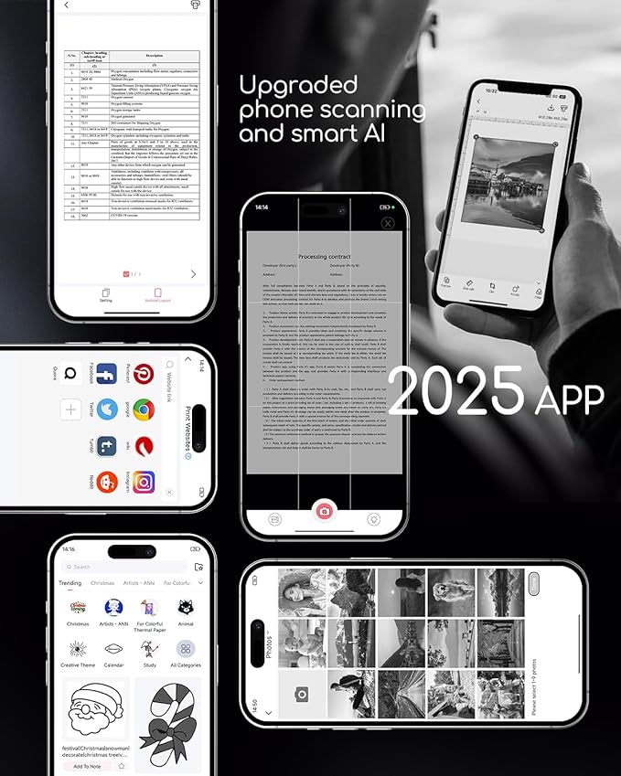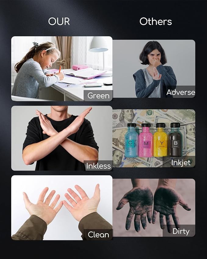 - Inkless Printer [Cost-Effective & Inkless Printing]: The Bluetooth mobile printer adopt advanced thermal technology, no ink, toner, or ribbon required during printing, no clogging and cleaning problems! You only need to use the thermal paper, not support regular copy paper