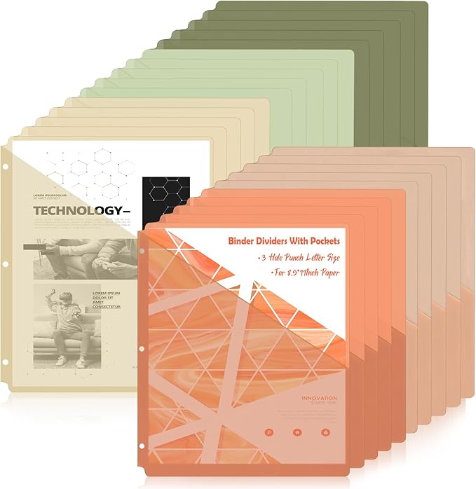 20 Pack Binder Dividers with Pockets Letter Size Clear Slash File Jacket 3 Hole Punch Plastic Document Folders for Office Home School (Color(Morandi))