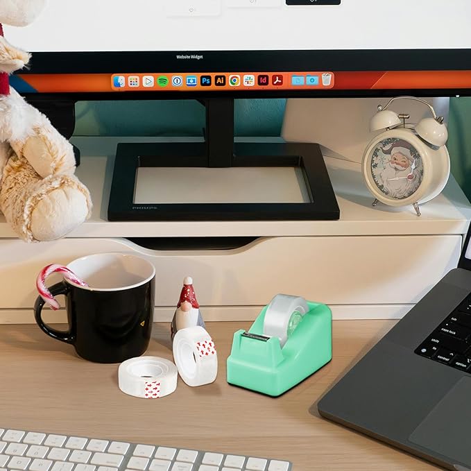 - Keep your workspace looking neat and tidy with this convenient and functional desktop tape dispenser.