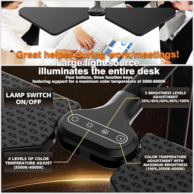 - 【Unshakable Stability】ABS+steel clamp holds 2" thick desks securely. 24V safe voltage prevents overheating - even kids can adjust it safely. Every material is carefully selected and every design is carefully considered, which has created this stunning desk light!