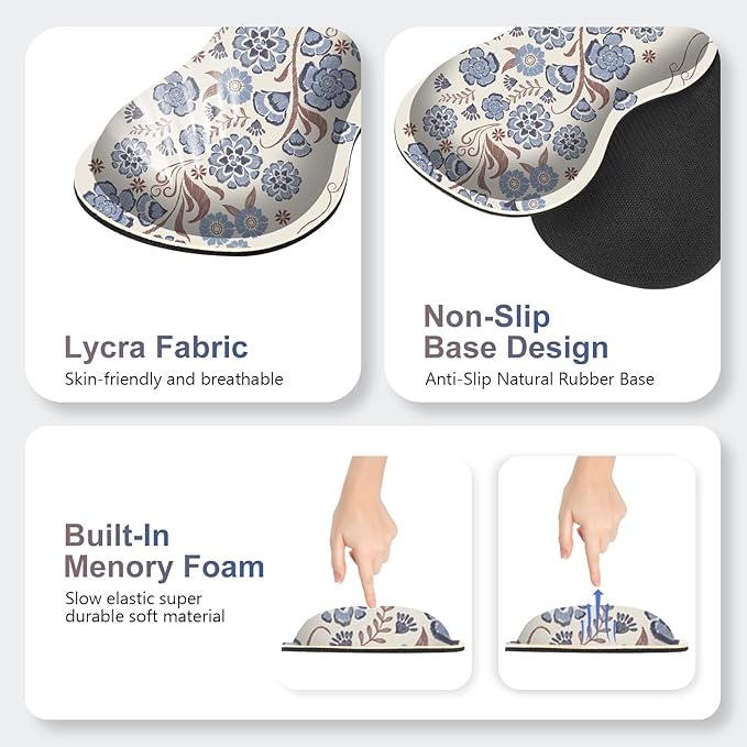 Desk Mat Gaming Mouse Pad, Cute Desk Matt Keyboard Wrist Rest for Desktop, Anti-Slip Big Mousepad Stitched Edges, XXL Large Mouse Pad with Wrist Support for Home Office I Vintage Blue Flower