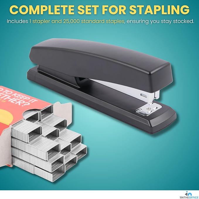 - Stapler with staples comes with 25,000 staples, reducing the need for frequent reloading.