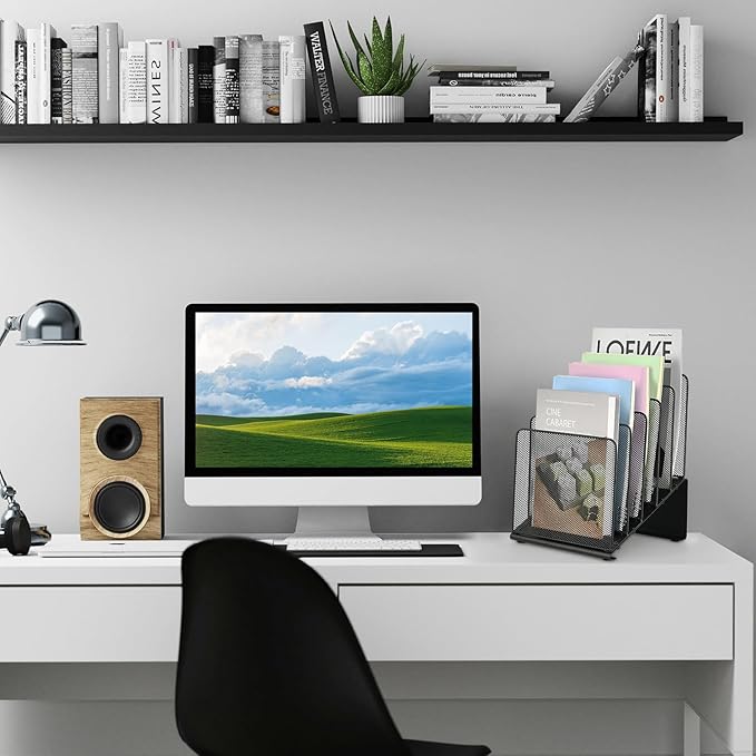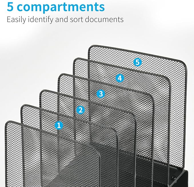 - ✅【Simplified Organization】This office organizer comes with 5 spacious compartments, making it effortless to tidy up your desk by neatly arranging your files and magazines, bidding farewell to cluttered workspaces.