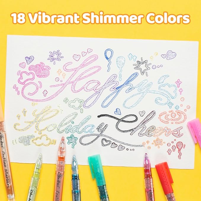 Ohuhu Outline Markers 18 Colors: Shimmer Metallic Double Line Drawing Pens for Adults Beginners Fun Crafts Art Supplies Gift Idea for Birthday Greeting Cards Glass Rock Plastic
