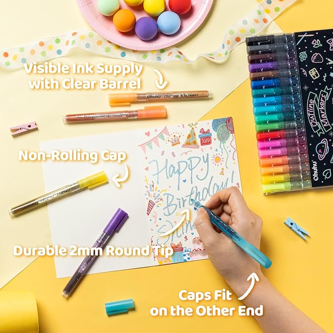 - FUN MARKERS FOR ALL: Make intersting cards for your important ones and bring the joy to everyone. Write the sweet words using Ohuhu outline markers on the greeting cards, birthday cards and all festival cards.