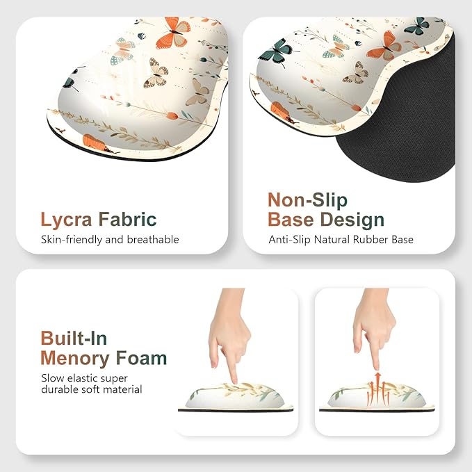 Desk Mat Gaming Mouse Pad, Cute Desk Matt Keyboard Wrist Rest for Desktop, Anti-Slip Mousepad with Stitched Edges, XXL Large Mouse Pad with Wrist Support for Desk Computer I Beige Buttefly
