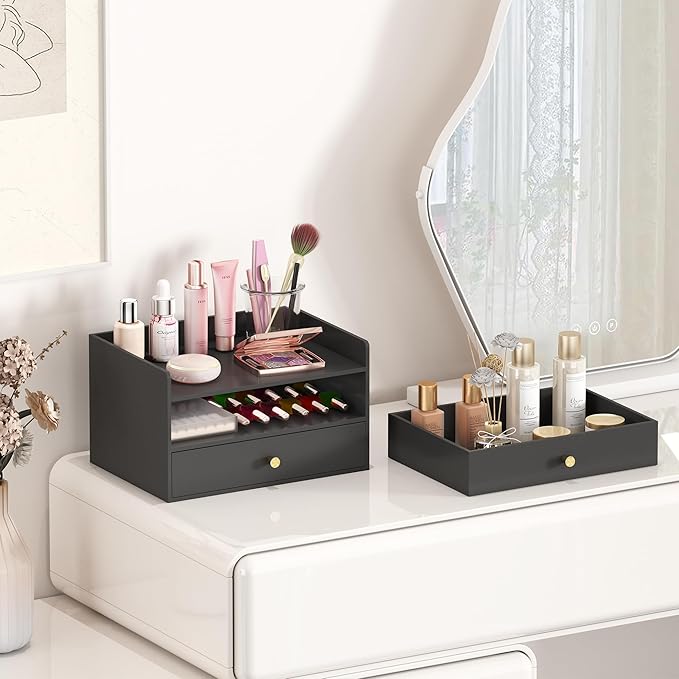 - Storage and Versatility:Dimensions: 12.2" x 8.66" x 7.09"LWH). This desktop organizer features multiple drawers to help organize office supplies, documents, stationery, and other desk essentials, keeping your workspace clutter-free and efficient. It’s ideal for use in the office, study, dresser, bathroom, or countertop.