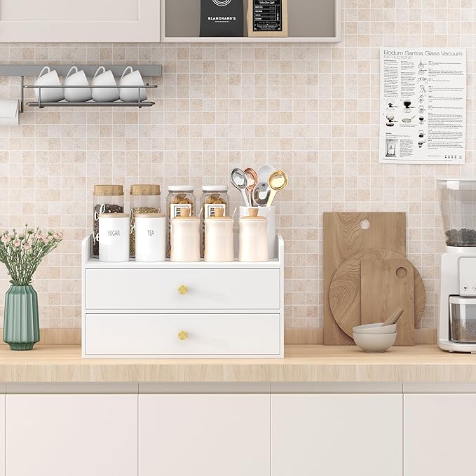 - Storage and Versatility:Dimensions: 12.2" x 8.66" x 7.09"LWH). This desktop organizer features multiple drawers to help organize office supplies, documents, stationery, and other desk essentials, keeping your workspace clutter-free and efficient. It’s ideal for use in the office, study, dresser, bathroom, or countertop.