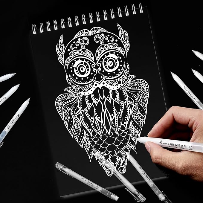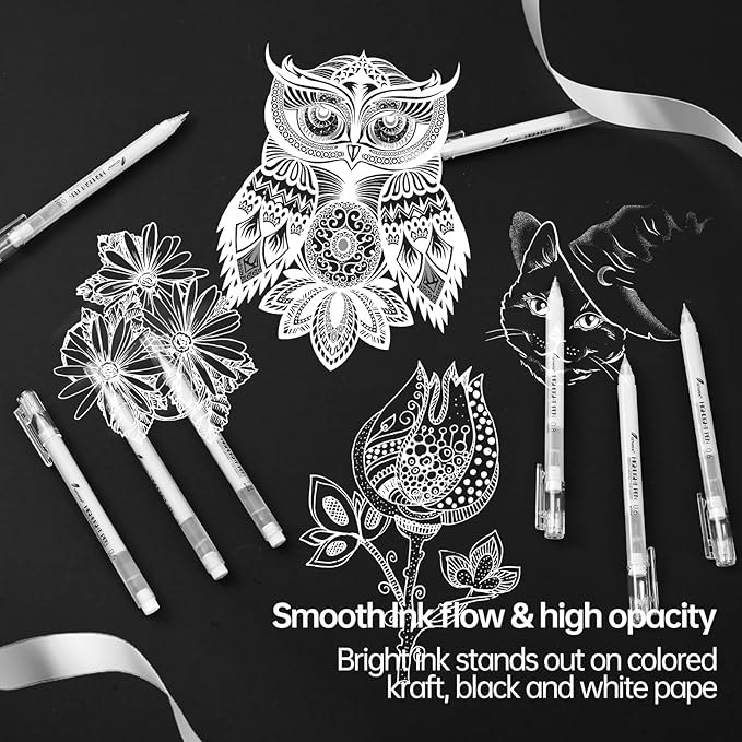 - Versatile: Writes on dark colored paper such as black paper, craft paper. White fine point gel pens for detail drawing sketching, illustration, card making, scrapbook and other projects. great for art-loving students, artists and beginners