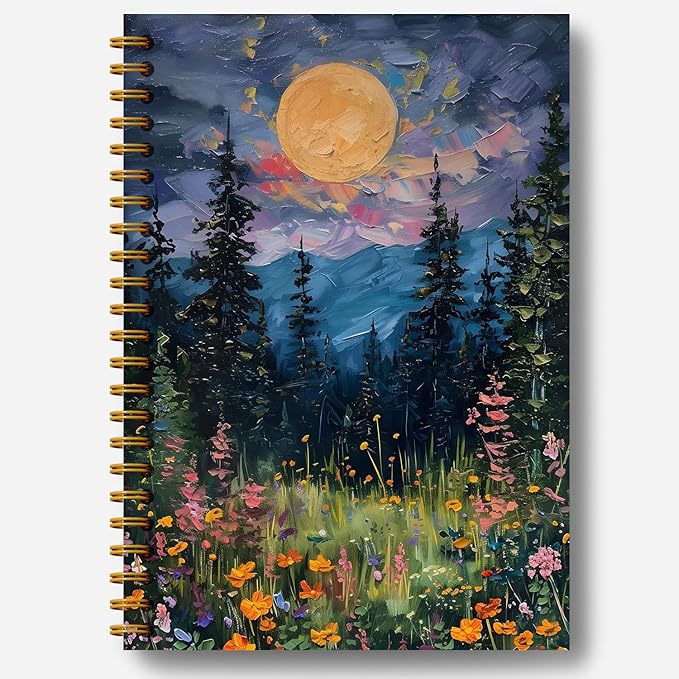 Moon Journal Notebook, Mystical Midnight Full Moon Wildflowers Floral Notebook Journal, Aesthetic Notebook, Journal Notebooks for Note Taking, Spiral Notebook 5.5x8.3 Inch