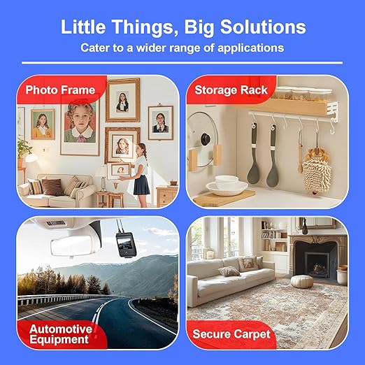 - 【No Residual】 The removable double sided tape will not leave any residue on the surface of the object,It is recommended to use a hair dryer for heating and removal due to high adhesion.