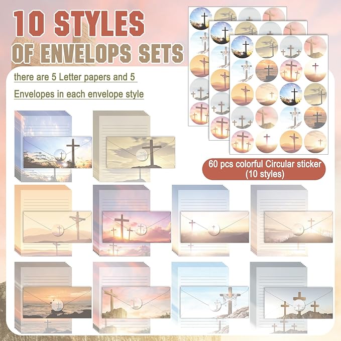 - Diverse Religious Stationery with Cross Designs: the Religious Stationery with Cross stationery paper and envelopes set has 10 different styles, beautiful and meaningful, designed with full Christian patterns, can make your letter more attractive, and you can choose different styles according to your own preferences to write letters to different partners