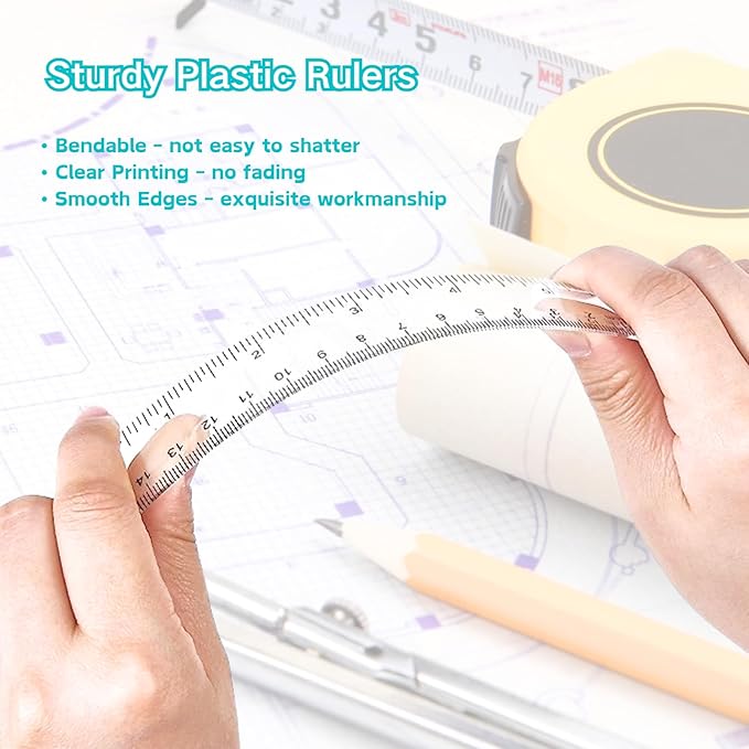 - Durable and Sturdy: KASBEE clear rulers are made of good quality plastic, hard and not easy to shatter, smooth edges and standard dimensions, our transparent color rulers are hardy measuring tools