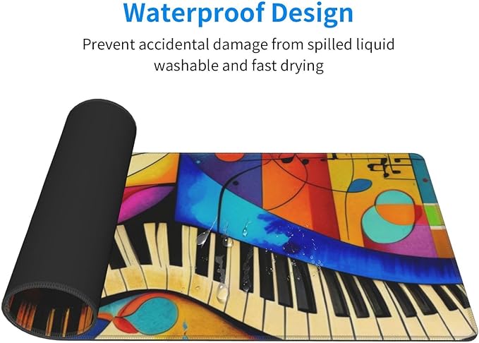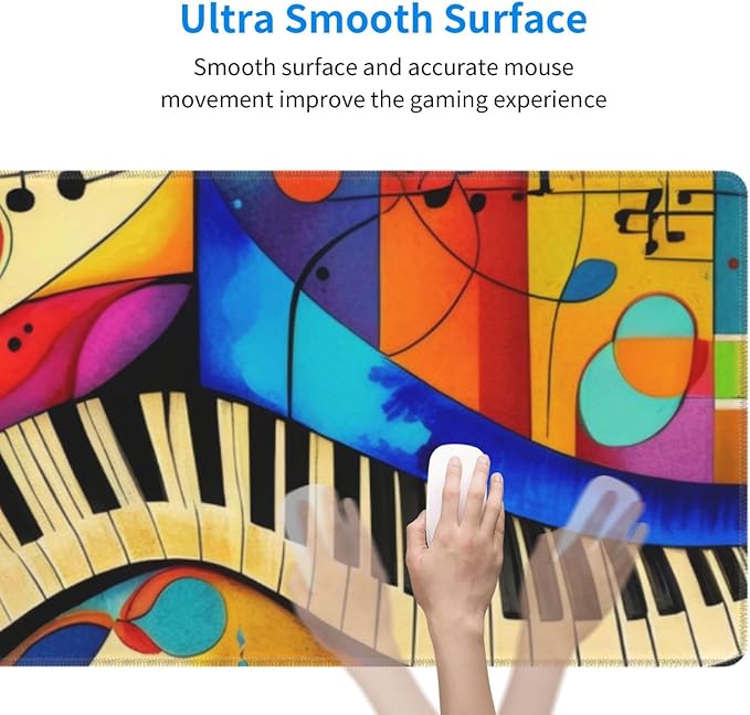 Gaming Mouse Pad, Large Non-Slip Rubber Base Mousepad, Keyboard Mouse Mat, Desk Pad with Stitched Edges, 31.5x11.8inch, Abstract Paino