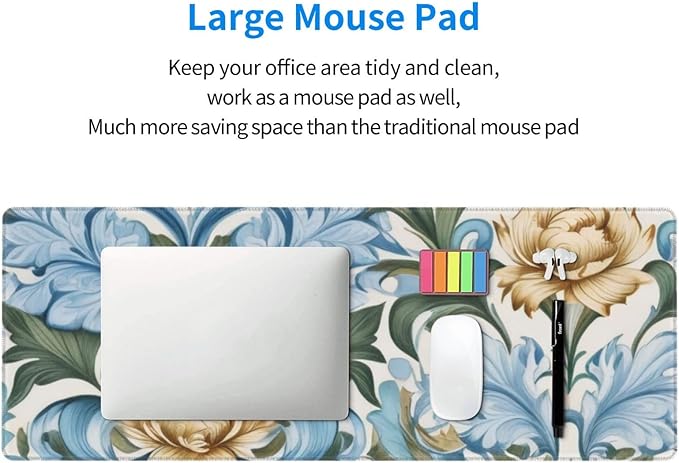 Gaming Mouse Pad, Large Non-Slip Rubber Base Mousepad, Keyboard Mouse Mat, Desk Pad with Stitched Edges, 31.5x11.8inch,Morris Flowers
