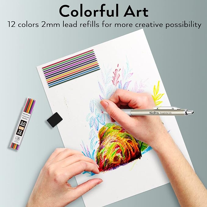 - 1. Awesome Artist Set 33PCS:Nicpro drawing mechanical pencil set comes with 6pcs metal mechanical pencils in 0.3mm,0.5mm, 0.7mm, 0.9mm and 2.0 mm , each sized a different line width for a variety of sketching techniques. 4B soft erasers and mini cap eraser refills are included,cleanly and completely removes graphite markings from paper