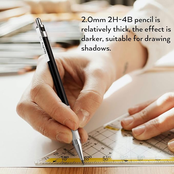 - 1. Awesome Artist Set 33PCS:Nicpro drawing mechanical pencil set comes with 6pcs metal mechanical pencils in 0.3mm,0.5mm, 0.7mm, 0.9mm and 2.0 mm , each sized a different line width for a variety of sketching techniques. 4B soft erasers and mini cap eraser refills are included,cleanly and completely removes graphite markings from paper