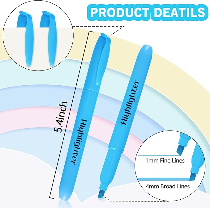 - Fast Drying & Durable: The highlighters pens use durable, quick-drying ink, allowing highlighted marks to be clearly visible without worrying about the ink staining your hands and books. Each highlighter is equipped with a pen cap to avoid ink from drying out for long-lasting use. Special Reminder; Remember to be sure after use keep the pen cap closed to prevent the ink from drying out