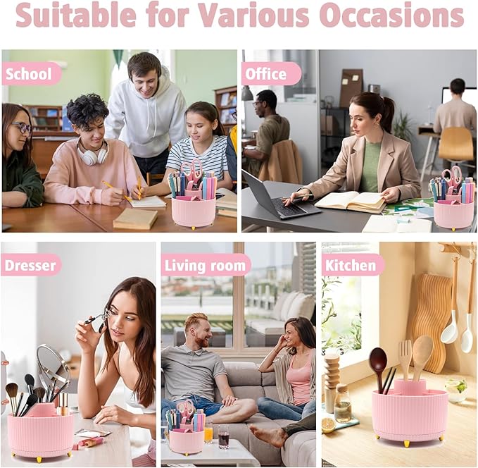 - Intelligent All-Round Rotation Structure - Our pink pen holder set has the function of 360 degree free rotation.With five compartments, the pen holder for desk provides ample storage without taking up too much desktop space. This pencil holder for desk is ingeniously designed to allow you to place various small items in easily accessible locations, while ensuring that it does not interfere with the use of your space. You can always quickly and conveniently obtain the items you need.