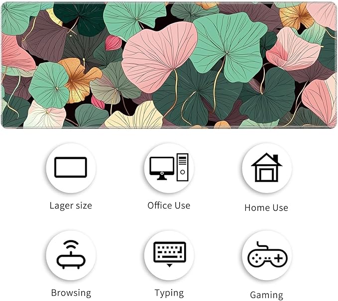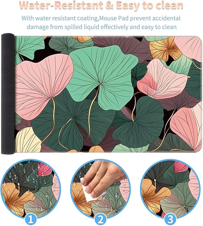 Desk Mat Large Gaming Mouse Pad (31.5x11.8 inch) with Stitched Edges, XL Mouse Pad +Coaster, Extended Mouse Mat Keybroad Mousepad Non-Slip Rubber for Gamer Men Women, Pink Teal Lotus Leaf