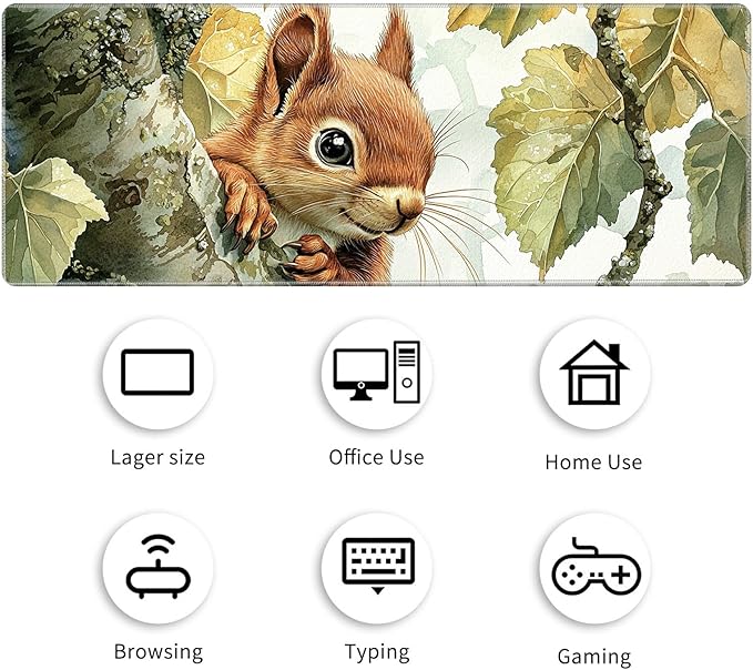 Desk Mat Large Gaming Mouse Pad (31.5x11.8 inch) with Stitched Edges, XL Mouse Pad +Coaster, Extended Mouse Mat Keybroad Mousepad Non-Slip Rubber for Gamer Men Women, Squirrel Camo Tree