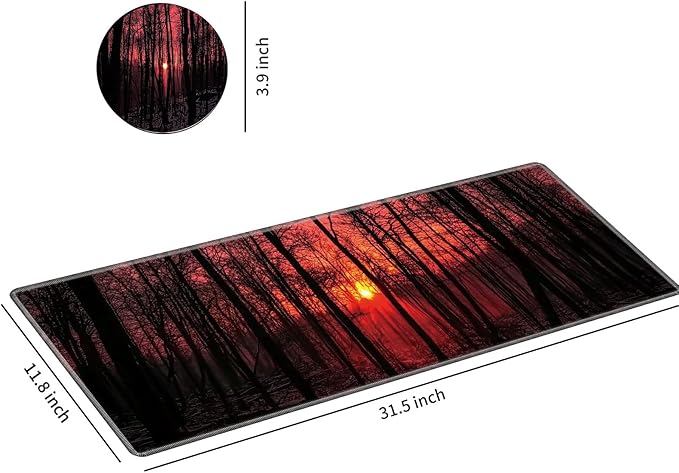 Desk Mat Large Gaming Mouse Pad (31.5x11.8 inch) with Stitched Edges, XL Mouse Pad +Coaster, Extended Mouse Mat Keybroad Mousepad Non-Slip Rubber for Gamer Men Women, Sunset Nature Forest