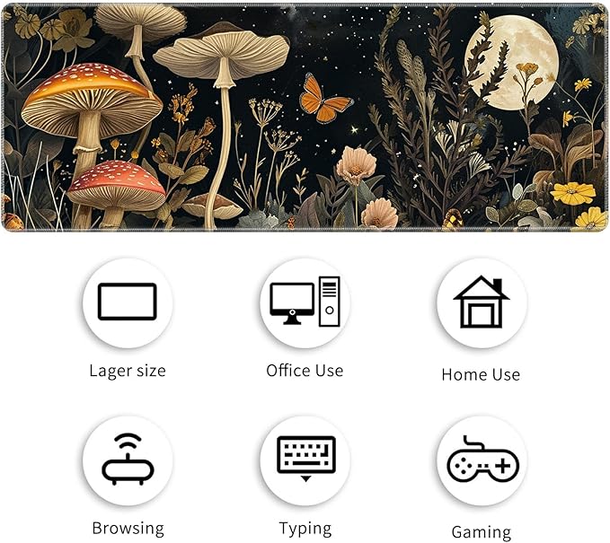 Desk Mat Large Gaming Mouse Pad (31.5x11.8 inch) with Stitched Edges, XL Mouse Pad +Coaster, Extended Mouse Mat Keybroad Mousepad Non-Slip Rubber for Gamer Men Women, Autumn Mushrooms Moon
