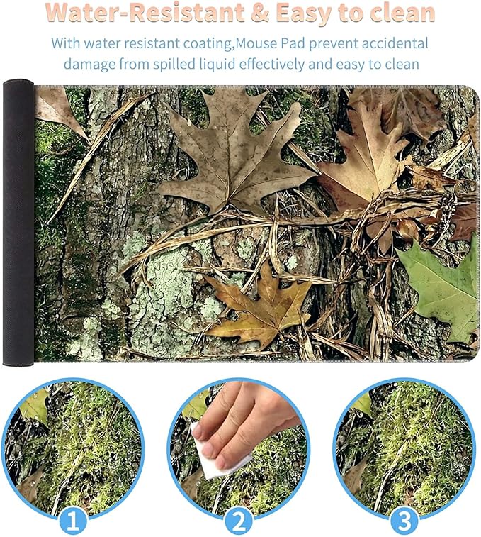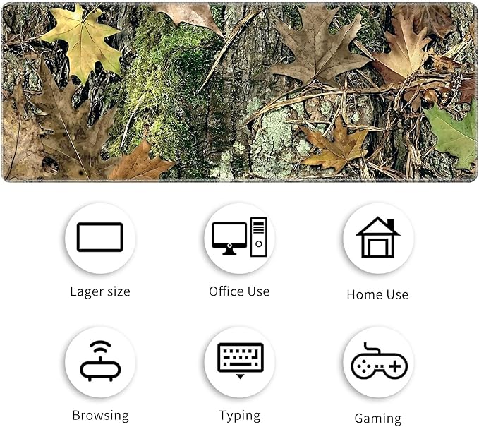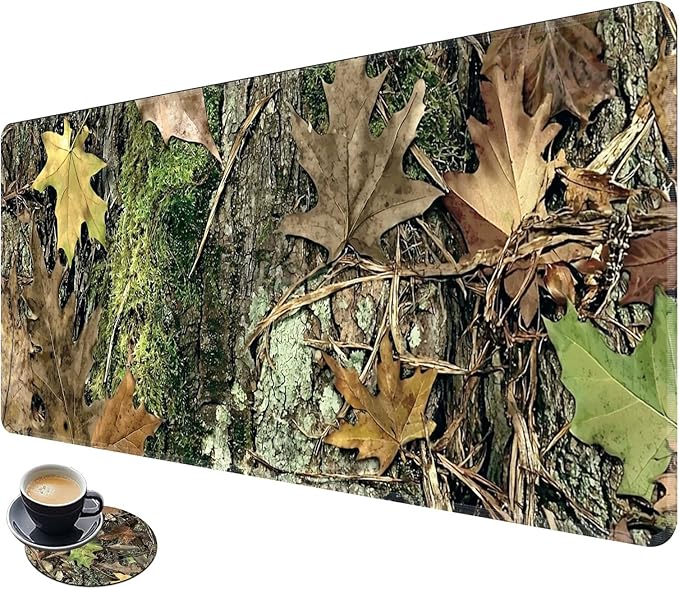 Desk Mat Large Gaming Mouse Pad (31.5x11.8 inch) with Stitched Edges, XL Mouse Pad +Coaster, Extended Mouse Mat Keybroad Mousepad Non-Slip Rubber for Gamer Men Women, Camo Tree