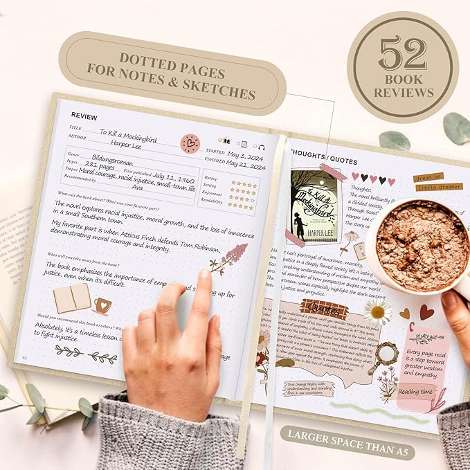 - 【Durable & Premium Quality】Hard-covered in natural linen with gold-embossed titles and spine for a scratch-resistant finish. Crafted with thick 120gsm paper, the hardcover book review journal ensures a smooth writing experience without worries of smudging or bleed-through.