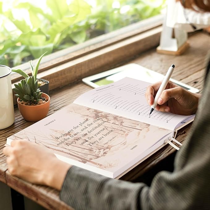 - 【Durable & Premium Quality】Hard-covered in natural linen with gold-embossed titles and spine for a scratch-resistant finish. Crafted with thick 120gsm paper, the hardcover book review journal ensures a smooth writing experience without worries of smudging or bleed-through.