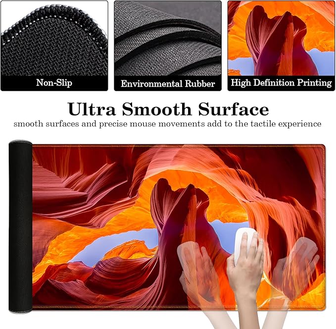 - 【Ultra Large Size】31.5" x 15.7" (800 mm x 400 mm), It will fit your desktop perfectly and provide the perfect space to move around, you can also use this extended mouse pad as office, gaming, keyboard pad, platform protector or desk pad, and for all types of mice and more.
