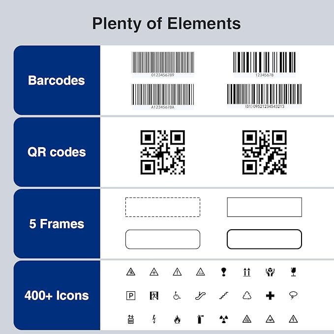 - Fully Customizable Labels: Personalize with 9 font sizes, 6 font styles, 5 frames, and 400+ icons; print multi-color labels with up to 4 lines per label
