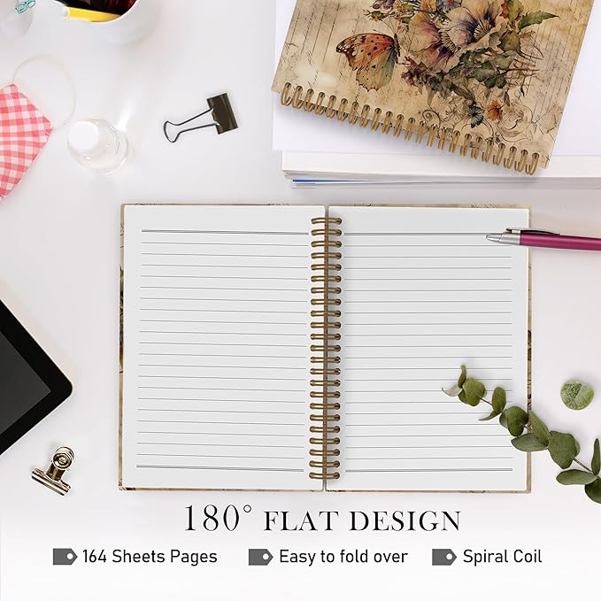 Vintage Butterfly Spring Spiral Notebook, Butterfly Journal, Butterfly Notebook, Butterfly Notebooks for School, Butterfly Floral Office Supplies Gifts for Women Coworkers, 5.5x8.3 Inch