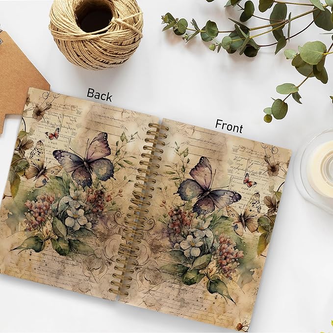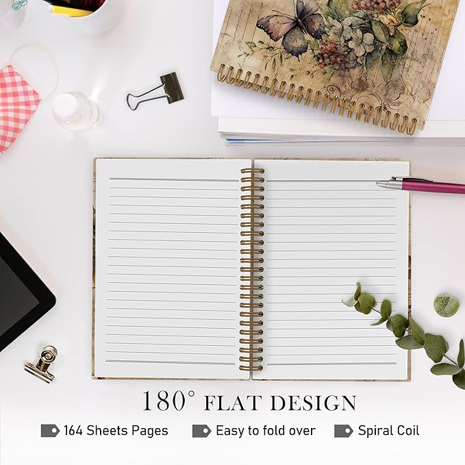 Vintage Butterfly Spiral Notebook, Butterfly Notebook, Butterfly Journal, Butterfly Flower Notebooks for School, Butterfly Floral Office Supplies Gifts for Women Girls Coworkers, 5.5x8.3 Inch