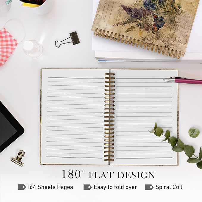 Butterfly Journal, Butterfly Notebook, Vintage Butterfly Spiral Notebook, Butterfly Notebooks for School, Butterfly Gifts for Women, Butterfly Floral Spring Office Supplies Gifts, 5.5x8.3 Inch